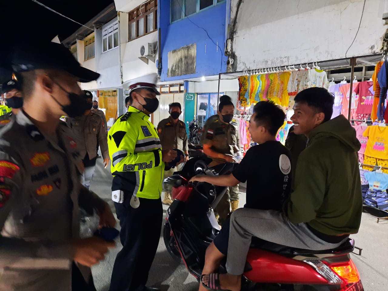 Tak hanya sibuk mengajak dan menghimbau masyarakat agar tetap disiplin prokes, pihaknya juga berbagi masker gratis kepada para pedagang maupun pengunjung pasar malam.