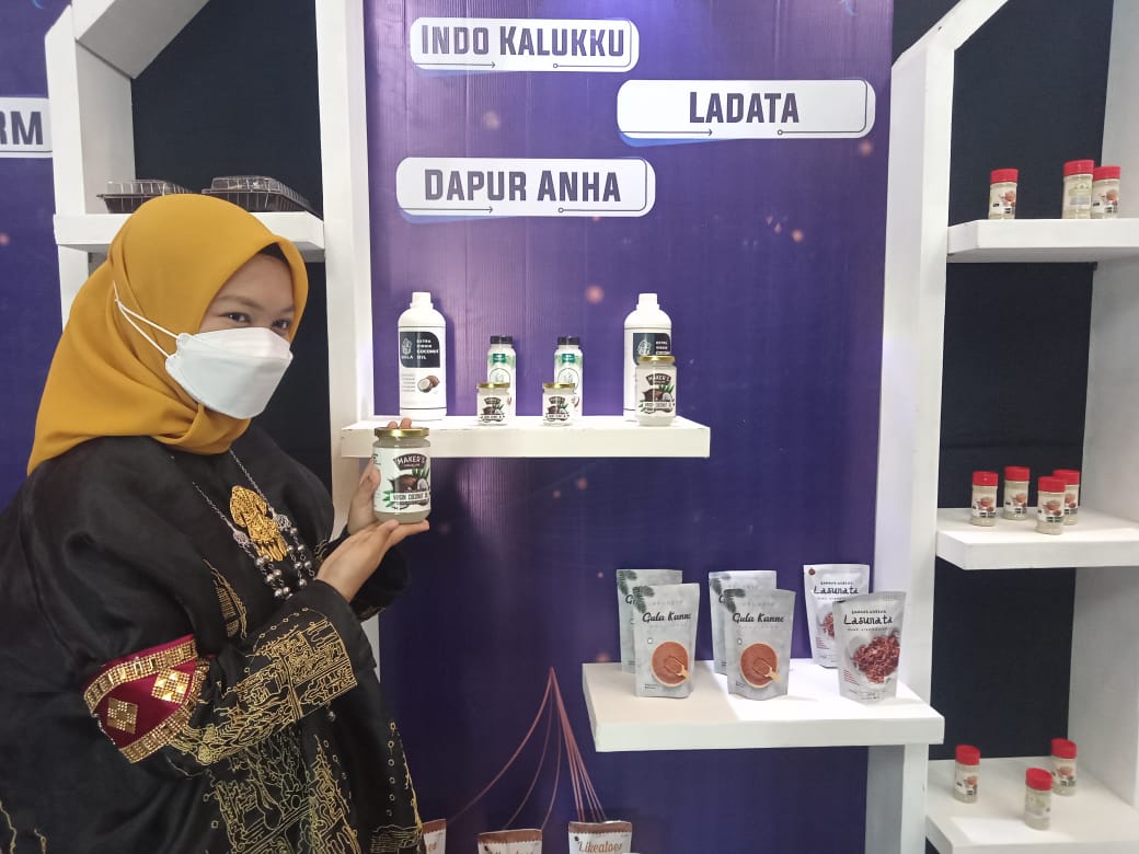 UMKM dari Kabupaten Mamuju Tengah (Mateng) diantaranya Karya Mega Rezky (Ottita) dengan produk keripik pisang dan gula aren dan Tabarota dengan produk olahan dari sagu.