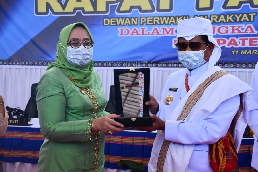 MAMASA, RAKYATSULBAR.COM—Wakil Gubernur Sulawesi Barat (Wagub Sulbar) Enny Anggraeni Anwar, menghadiri Rapat Paripurna DPRD dalam rangka Peringatan Hari Jadi ke-20 Tahun Kabupaten Mamasa, di Tribun Kondo Sapata Alun-Alun Kota Mamasa, Jumat, (11/3/2022).