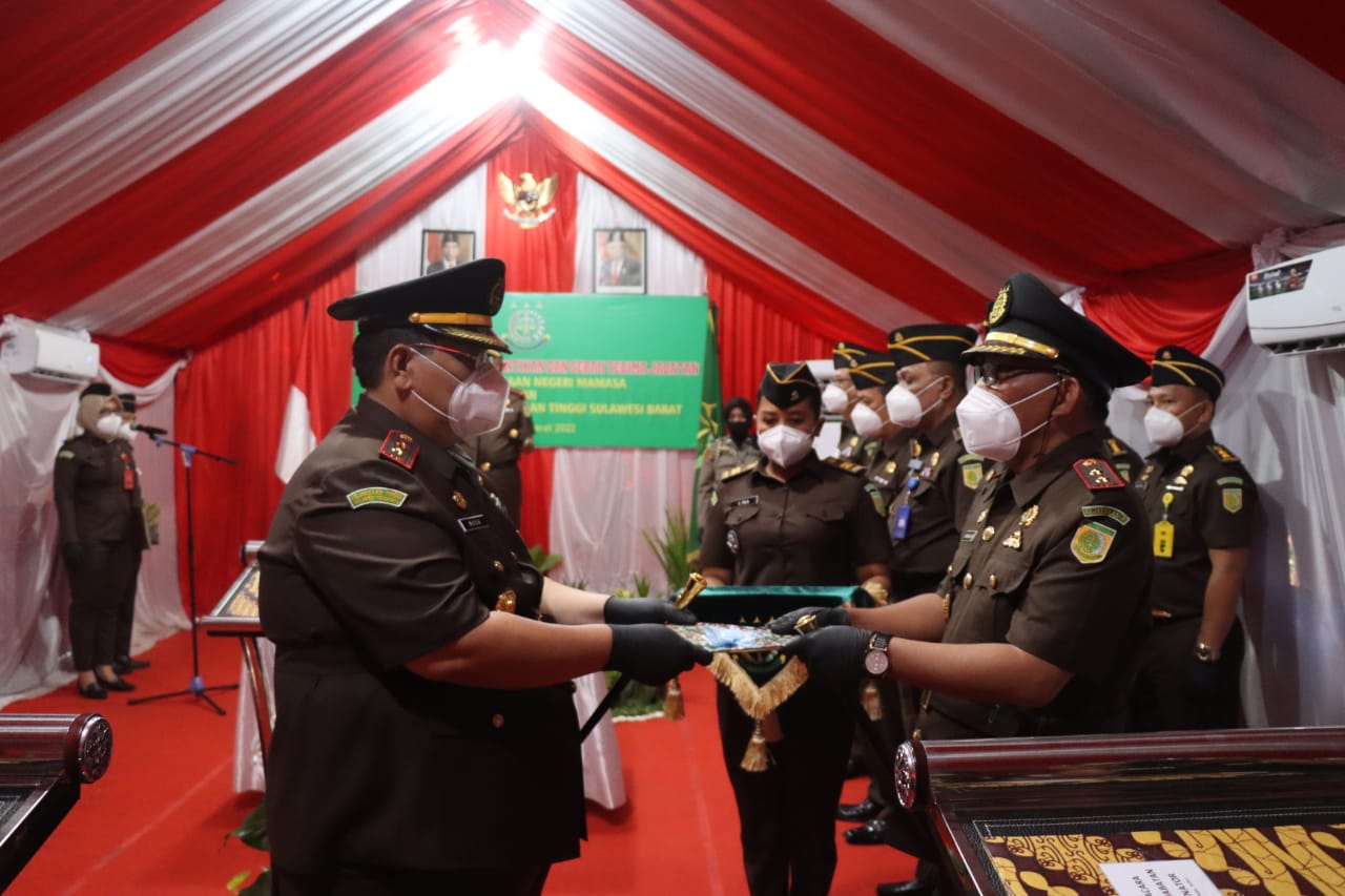 MAMUJU, RAKYATSULBAR.COM— Kepala kejaksaan tinggi Sulbar Didik istiyanta, SH.,MH Lantik empat orang pejabat kejaksaan tinggi Sulbar di tenda darurat halaman kantor Kejati Sulbar. Selasa, (15/3/2022).