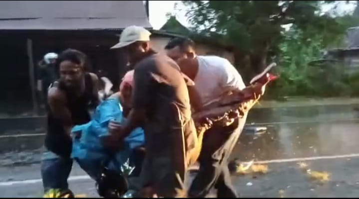 Melihat korban terkapar dijalan, dengan Sigap Kapolresta Mamuju langsung turun dari mobil dinasnya dan langsung mengangkat korban bersama warga di tempat tersebut.