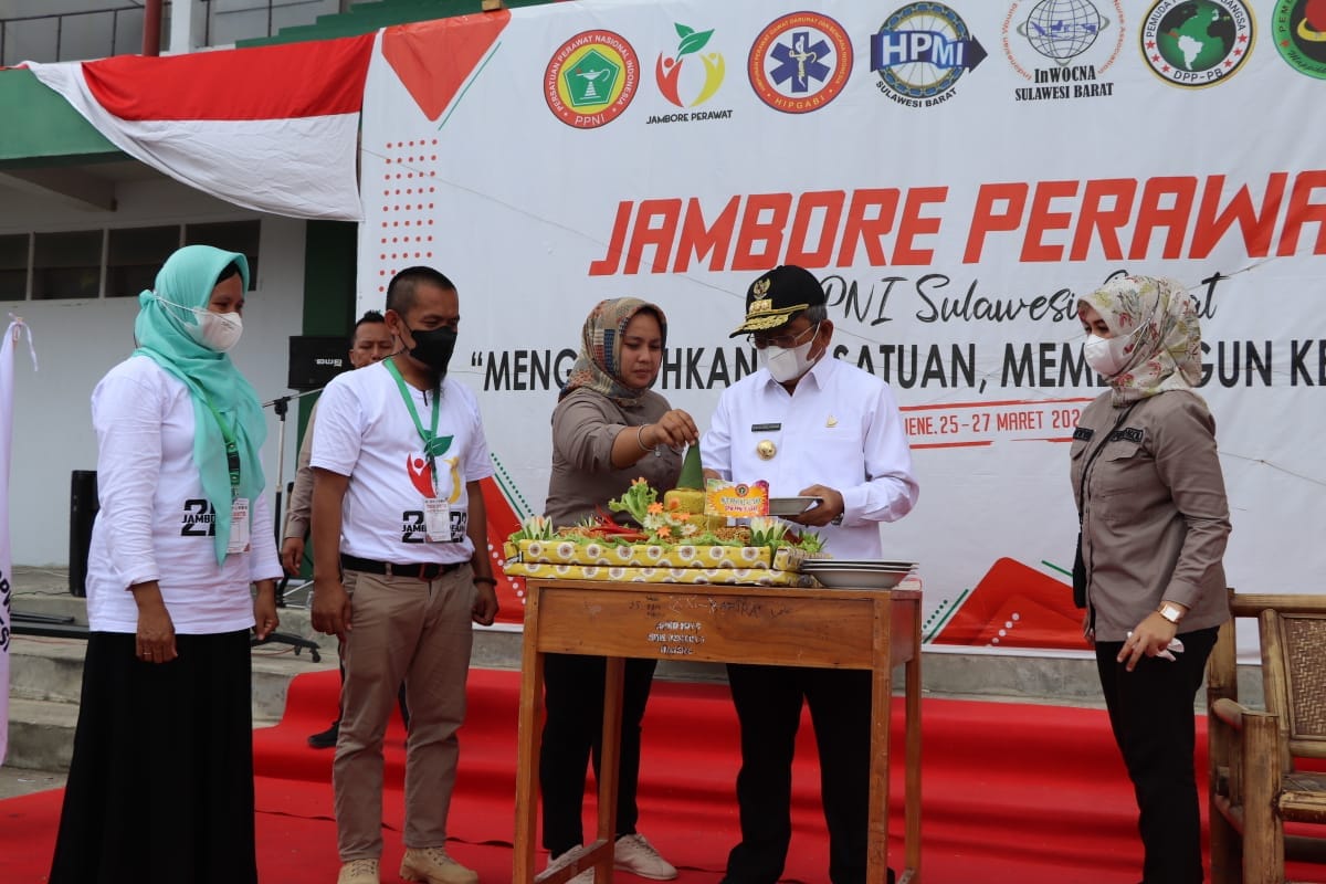 MAJENE, RAKYATSULBAR.COM–Gubernur Sulbar, Ali Baal Masdar menutup Kegiatan Penyerahan Piala Jambore Perawatan Provinsi Sulbar di Sport Center Majene, Minggu (27/3/2022.)
