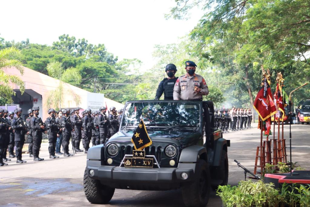 MAKASSAR, RAKYATSULBAR.COM Kepala Kepolisian Daerah (Kapolda) Sulsel, Irjen Pol Nana Sudjana, mengukuhkan Pasukan Reaksi Cepat (PRC) Sat Brimob Polda Sulsel di Halaman Gedung Olahraga (GOR) Sudiang, Kamis (31/3/22).
