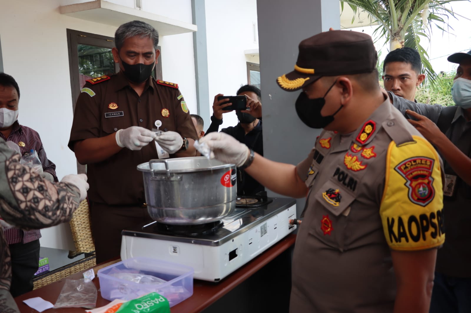 POLMAN, RAKYATSULBAR.COM– Kapolres Polman AKBP Agung Budi Leksono, mengikuti kegiatan pemusnahan Barang bukti (BB) yang telah memiliki kekuatan hukum tetap (inkrah) di Kejaksaan Negeri Polewali Kabupaten Polman, Sulawesi Barat (Sulbar), Kamis (31/3/2022).
