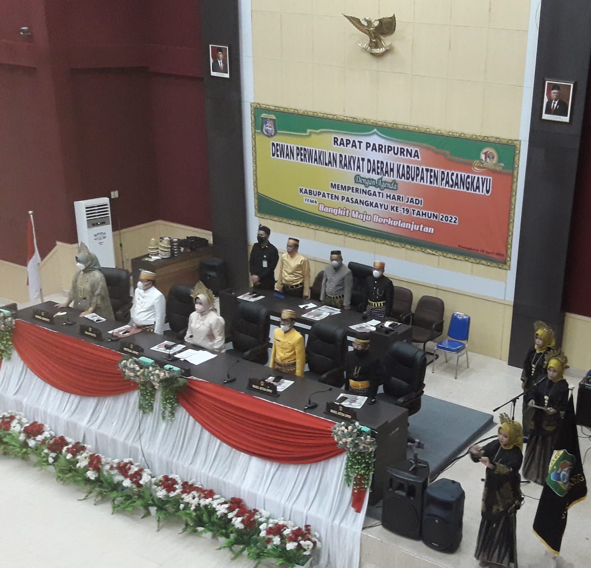Rapat paripurna Dewan Perwakilan Rakyat Daerah (DPRD) Kabupaten Pasangkayu, dengan agenda memperingati hari jadi kabupaten Pasangkayu ke- 19 tahun 2022.