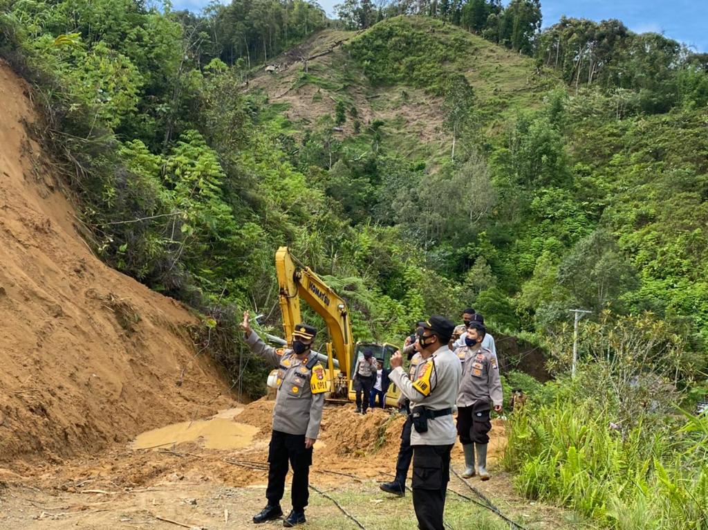 Pada saat meninjau lokasi longsor tersebut, Kapolres Mamasa didampingi oleh Kasat Samapta Polres Mamasa dan Kapolsek Mambi