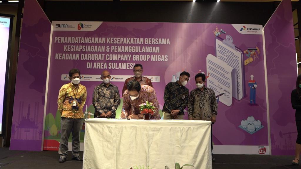 Executive GM Pertamina Patra Niaga Regional Sulawesi, Agus Dwi Jatmoko dalam sambutannya mengucapkan terimakasih atas kesediaan masing-masing perusahaan untuk saling membantu dalam penanggulangan keadaan darurat yang diwujudkan dalam penandatanganan MoU ini.