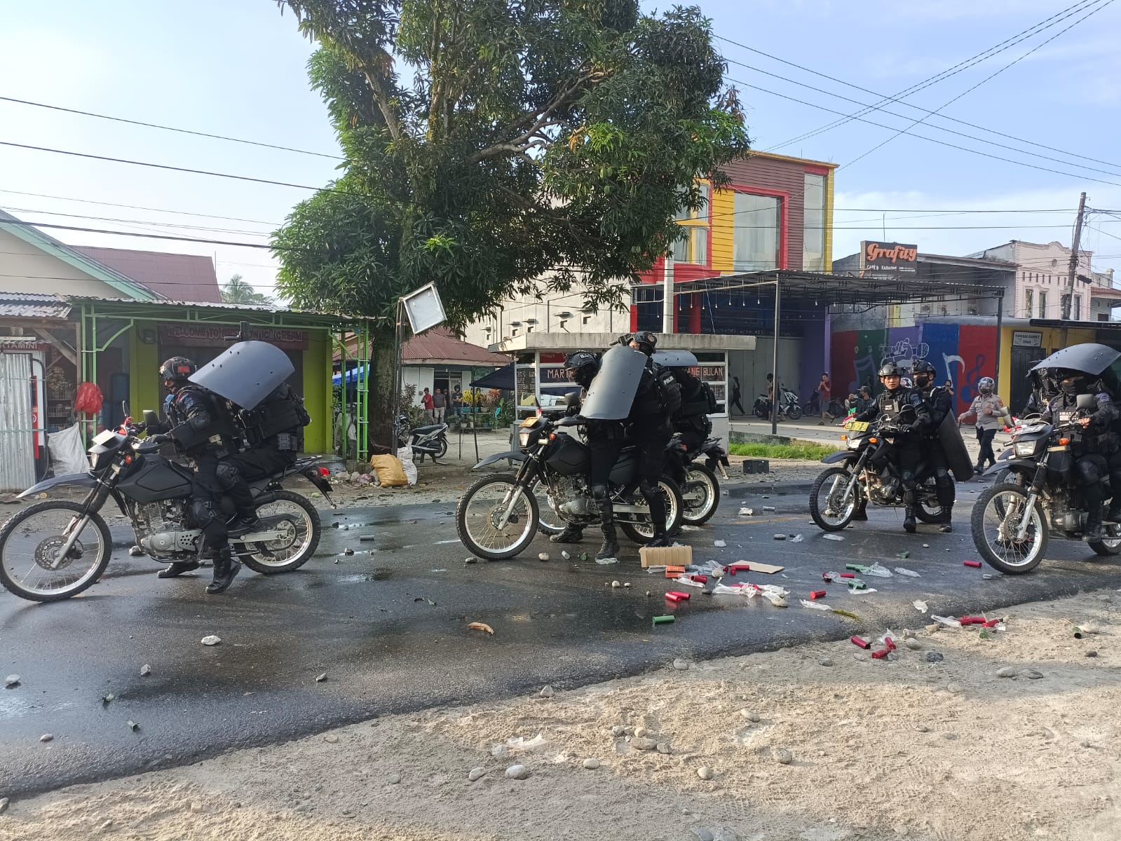 “Iya, tadi pas ingin mendekati warga dan meminta agar tidak bertindak anarkis dan meredam massa yang lain, tiba-tiba saya terkena batu dibagian pipi sebelah kiri,” kata Pasi OPS Batalyon D Pelopor, AKP Muhammad Rais yang ikut bertugas memangamankan aksi itu, Jumat (3/6/2022).