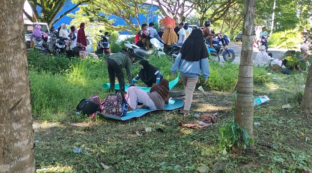 Warga khususnya berada di Stadion memasang tikar atau terpal di bawah pepohonan di sekitar stadion Manakarra.