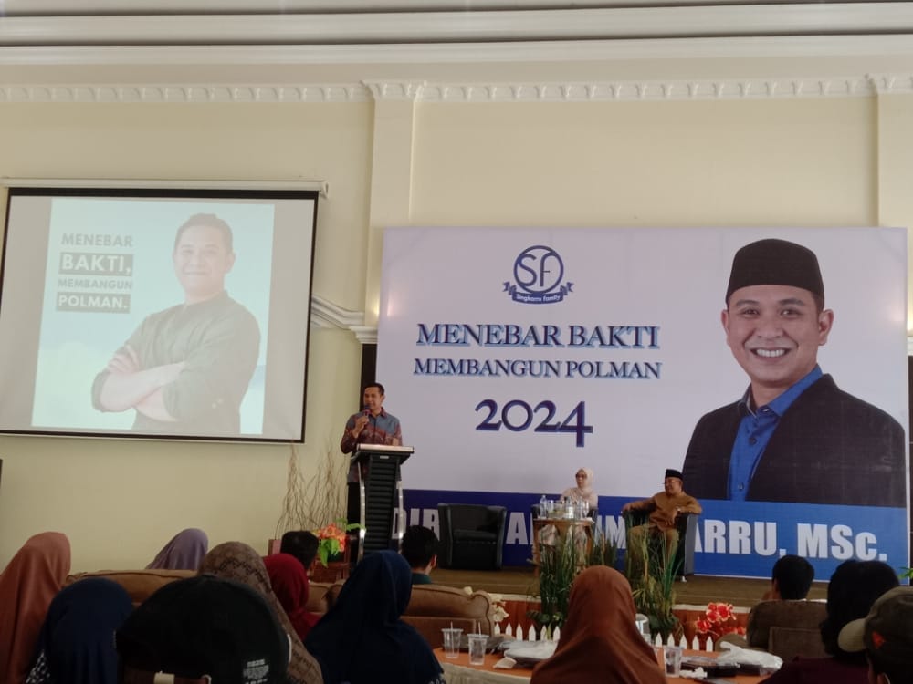 Menebar Bakti Membangun Polman 2024, Dirga AP Singkarru menjelaskan di Polman banyak yang harus ditingkat, yang belum bagus di perbaiki, yang berantakan di tata dengan baik dan yang sudah baik kita pertahankan.