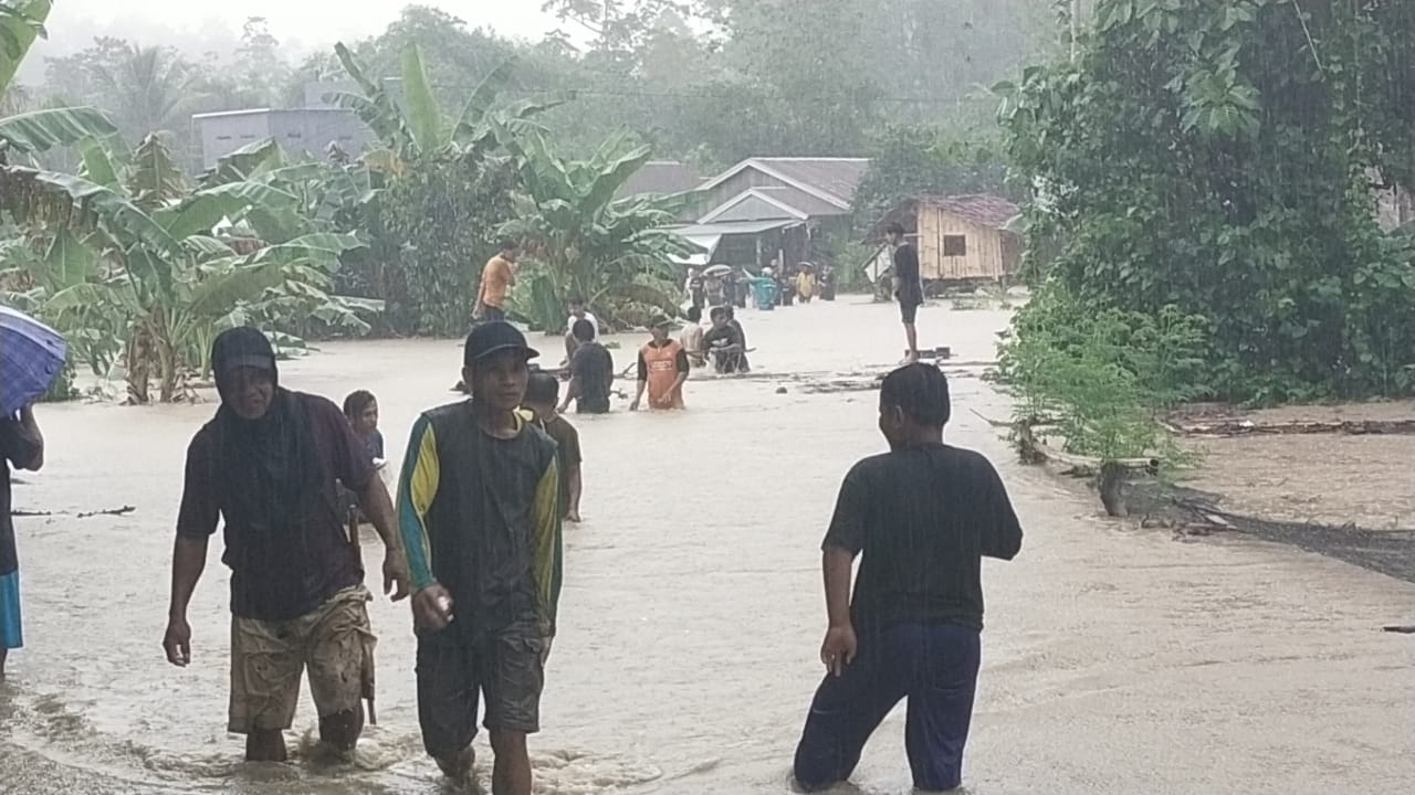 “Tadi pak tidak lama hujan, tiba air sungai meluap, hingga merendam rumah warga,” ucap Bisman.