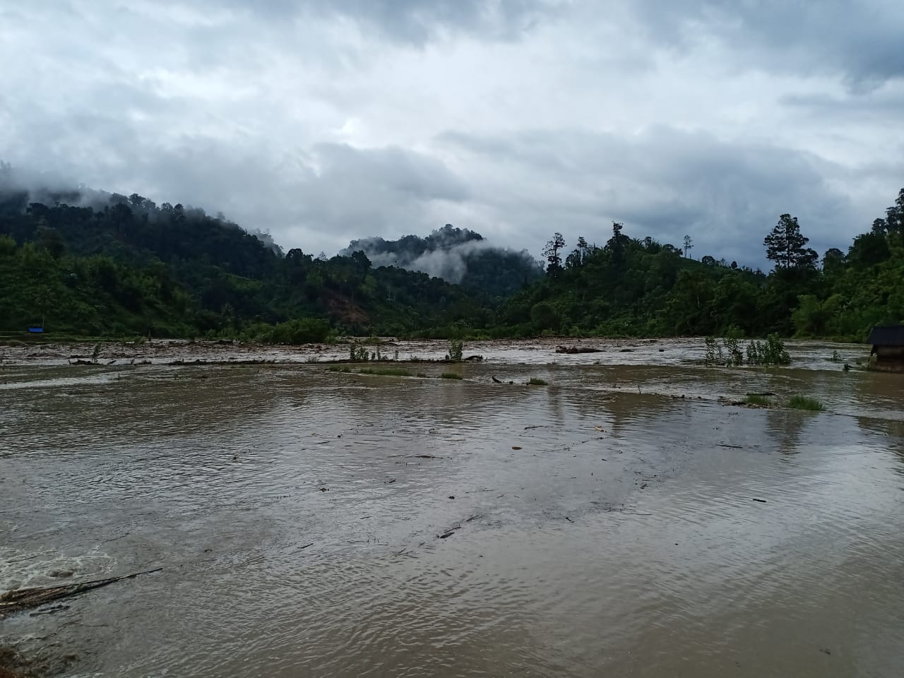 Akibatnya, puluhan hektar persawahan yang sudah ditanami padi terendam dan tertimbun material berupa lumpur dan kayu-kayu besar.