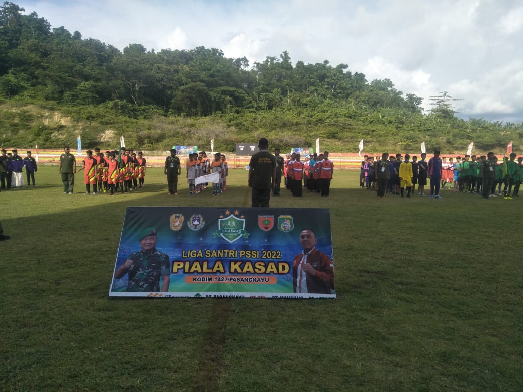 PASANGKAYU,RAKYATSULBAR.COM- Kodim 1427/ Pasangkayu gelar turnamen pesepak bola liga santri PSSI 2022 untuk memperebutkan piala Kasat, yang di pusatkan di Gelora Djiwa Pasangkayu.