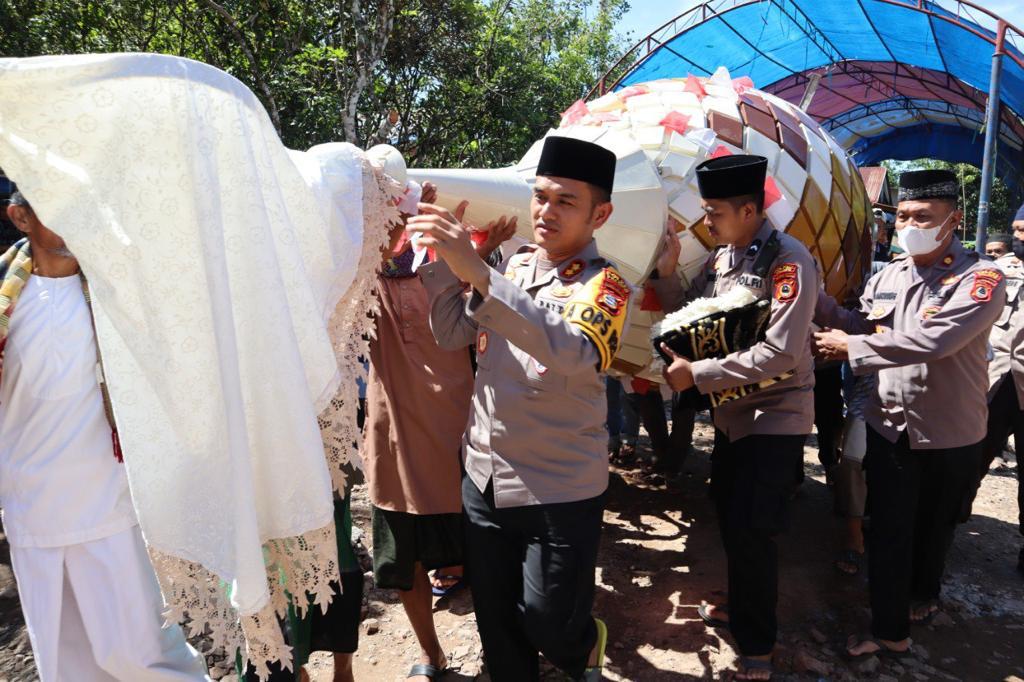 Tak ada sekat antara Kapolres Palopo dengan masyarakat dalam gotong royong pemasangan kubah tersebut.