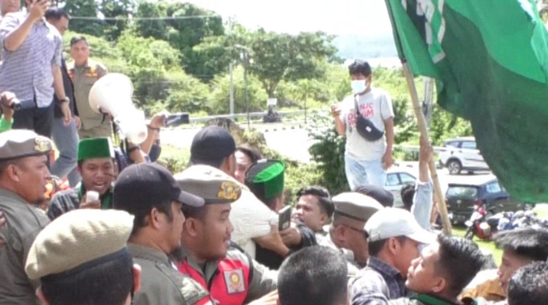 MAMUJU, RAKYATSULBAR.COM – Ketua Himpunan Mahasiswa Islam Cabang Manakarra Mamuju Anshar, mengaku dicekik oleh oknum satpol PP saat dirinya berusaha melerai anggotanya yang terlibat saling dorong dengan anggota Satpol PP Sulawesi Barat, saat menggelar aksi unjuk rasa di pintu gerbang Pemprov Sulbar. Kamis, (30/6/2022).
