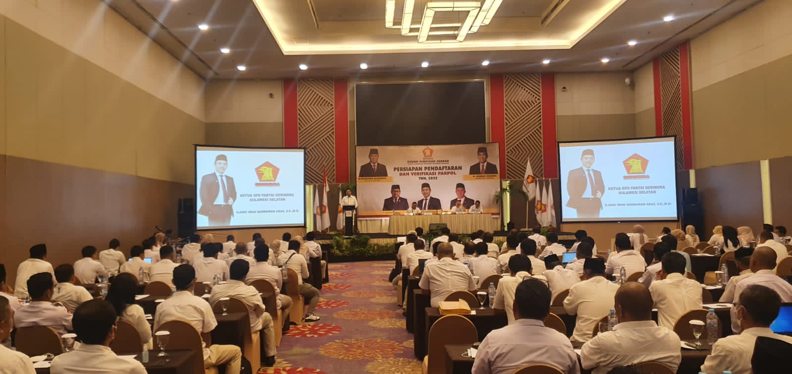 Sekretaris DPD Gerindra Sulsel Darmawangsyah Muin awalnya memperkenalkan satu persatu pengurus DPD Gerindra Sulsel.