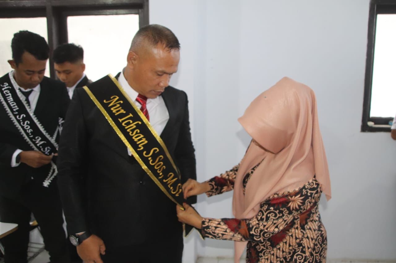 BONE, RAKYAT SULBAR.COM– Komandan Batalyon (Danyon) C Pelopor Satbrimob Polda Sulsel Kompol Nur Ichsan, S.Sos resmi menyandang gelar Magister Sains setelah mengikuti ujian tutup tesis dan dinyatakan lulus yang dilanjutkan dengan Yudisium program Magister Ilmu Administrasi oleh Ketua Prodi Pasca Sarjana STIA Prima Bone Dr. Masriadi, M.Si, Kamis (21/7/2022).