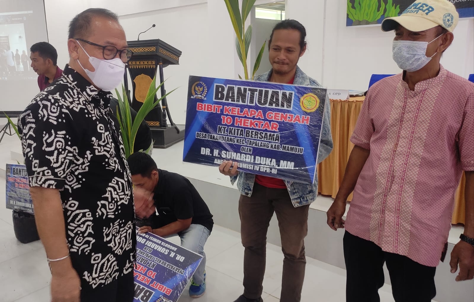 MAMUJU, RAKYAT SULBAR.COM – Anggota Komisi IV DPR RI Suhardi Duka (SDK) menyalurkan bantuan bibit kelapa genjah kepada kelompok tani di Kabupaten Mamuju. Penyerahan secara simbolis dilaksanakan di Aula Kantor Bupati Mamuju. Jumat (22/7/2022).