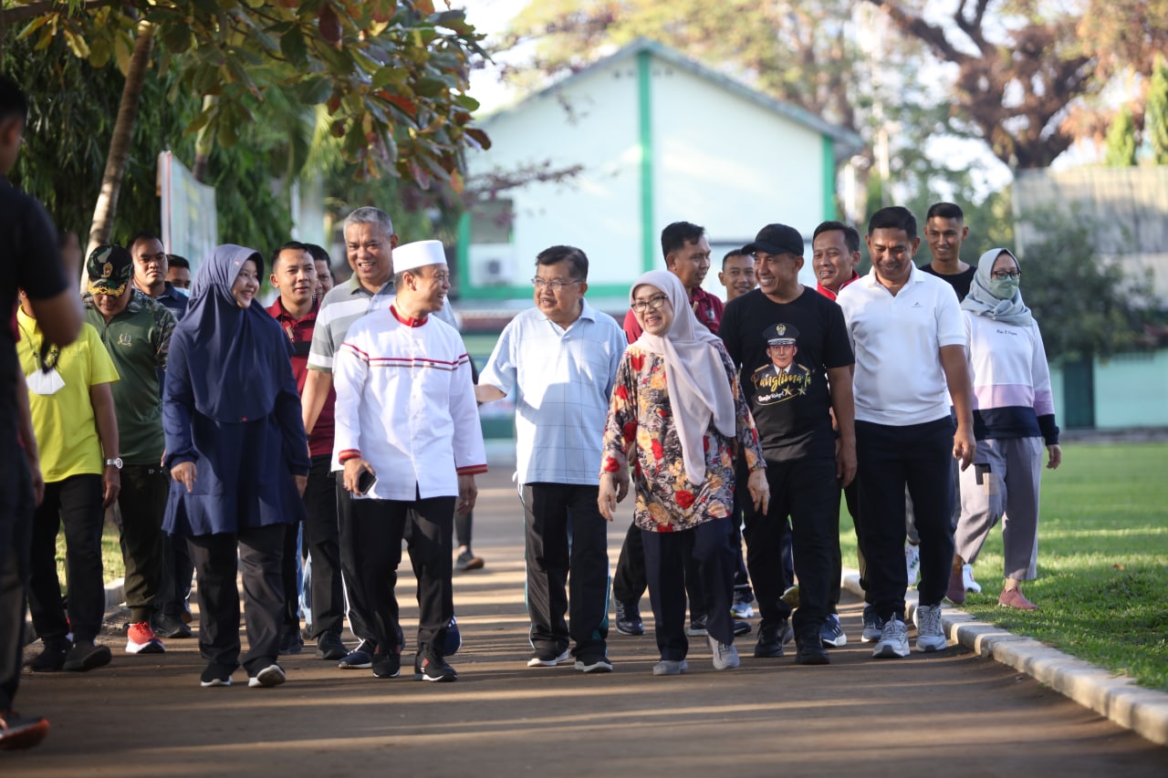 MAKASSAR, RAKYATSULBAR.COM–Mantan Wakil Presiden RI ke-10 dan ke-12 Dr. (H.C.) Drs. H. Muhammad Jusuf Kalla bersama Pangdam XIV/Hasanuddin Mayjen TNI Andi Muhammad Bau Sawa Mappanyukki, S.H., M.H dan Ustadz kondang Das’ad Latif serta rombongan melakukan jalan santai di seputaran lapangan Hasanuddin Jl. Jend. Sudirman Makassar, Sabtu (23/7/2022).