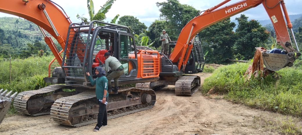Adapun alat bukti yang berhasil disita tim gabungan adalah di 2 unit alat berat Excavator merk Hitachi, 25 jerigen solar, alat talang dan 4 Unit alkon genset 7 pk.