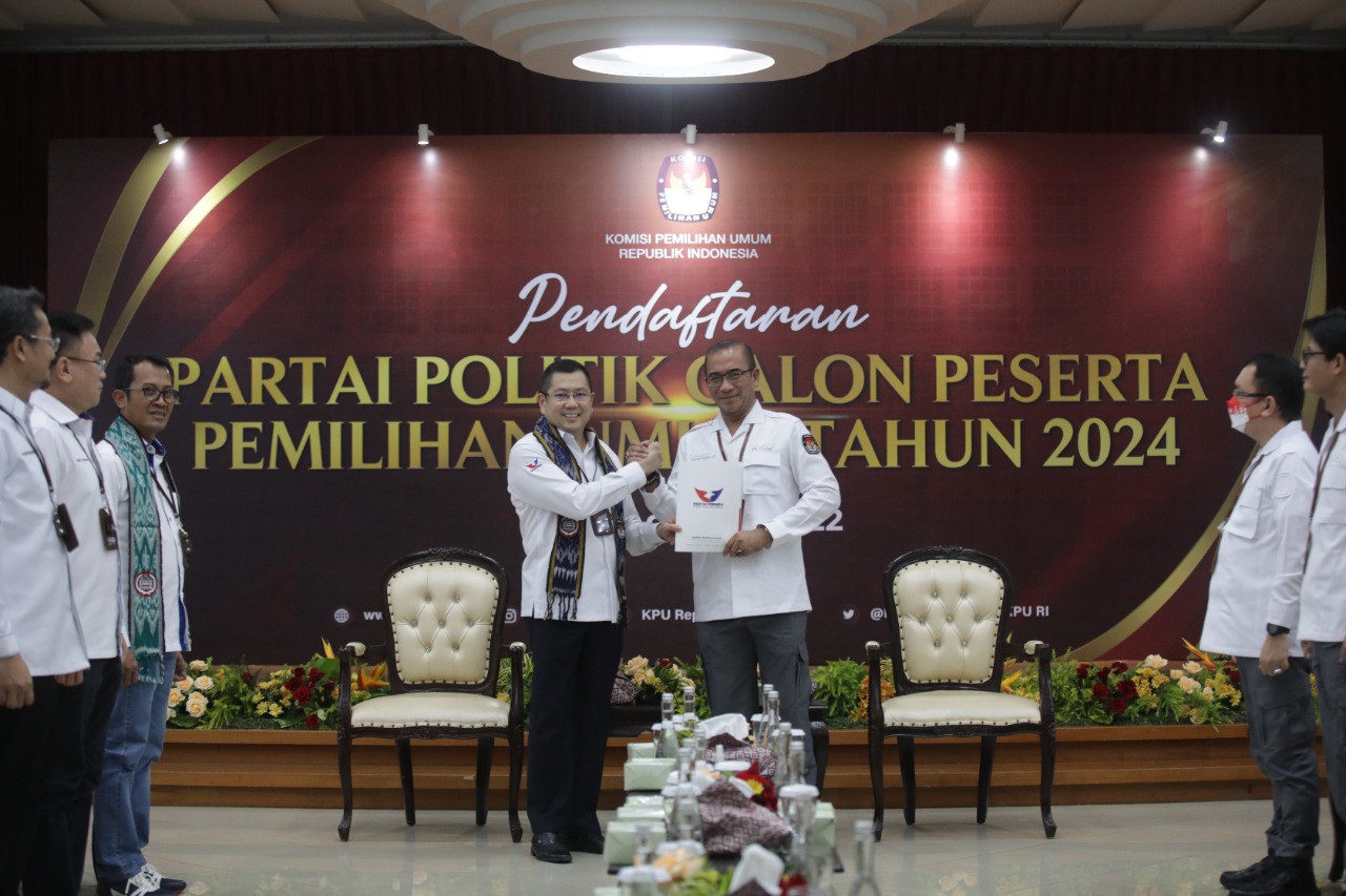 Sementara itu, Ketua KPU Hasyim Asyari mengatakan Partai Perindo menjadi salah satu partai yang mendaftarkan keikutsertaannya dalam Pemilu 2024 di hari pertama.