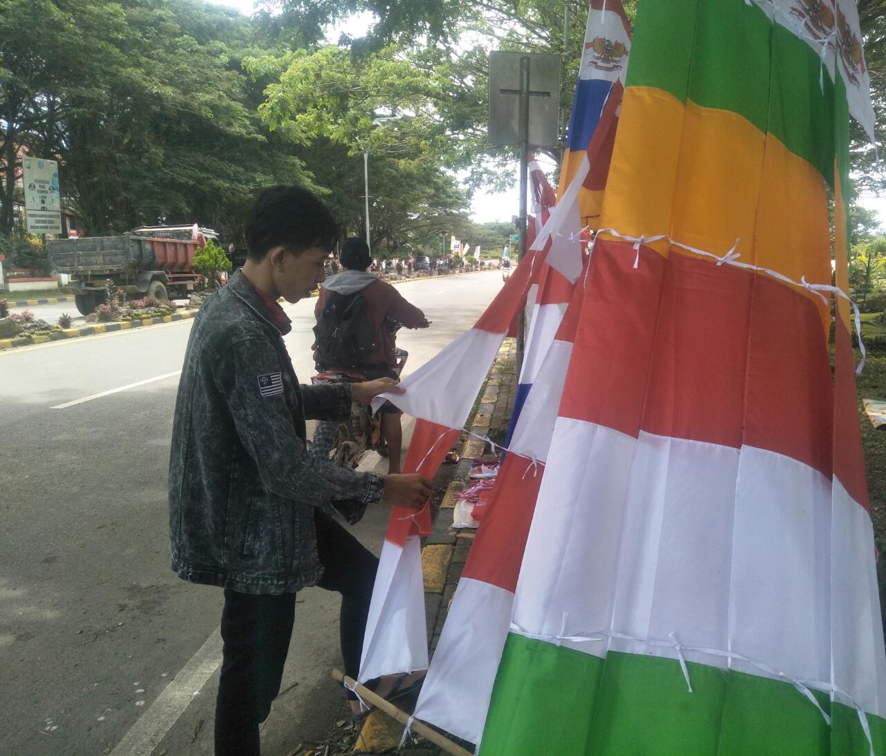 PASANGKAYU, RAKYAT SULBAR.COM– 14 hari lagi menjelang hari kemerdekaan Republik Indonesia (RI) yang ke- 77 tahun, penjual bendera Merah Putih dan pernak pernik musiman di Pasangkayu semakin bertambah.