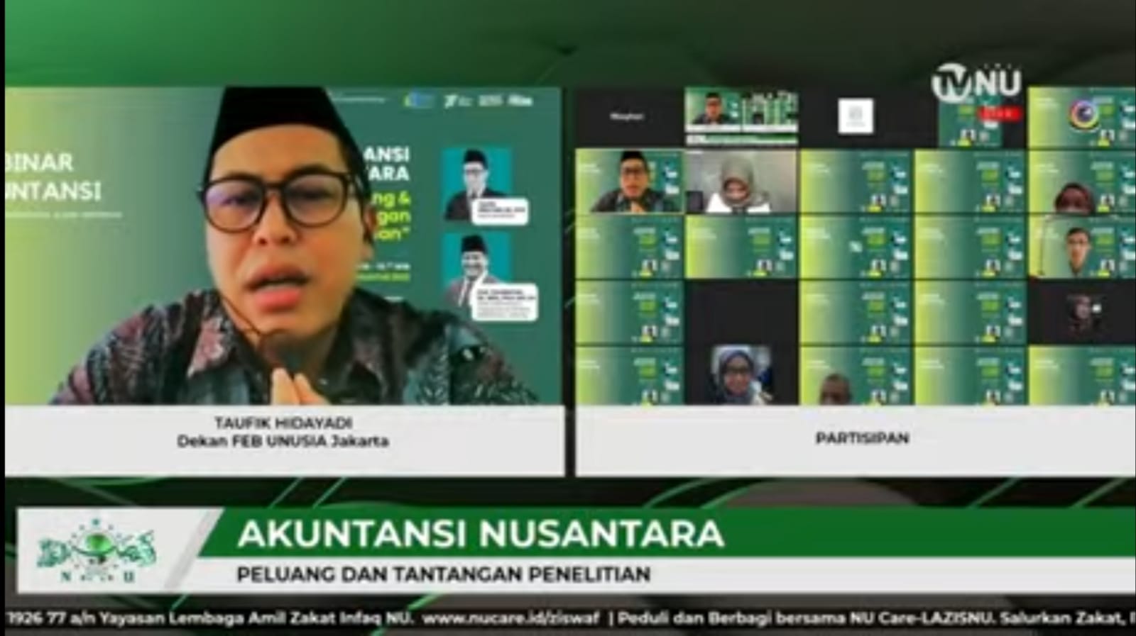 JAKARTA, RAKYATSULBAR.COM — Program Studi (Prodi) Akuntansi Fakultas Ekonomi dan Bisnis Universitas Nahdlatul Ulama Indonesia (Unusia) berkolaborasi dengan Forum Akuntansi, Manajemen dan Ekonomi (FAME) Indonesia menyelenggarakan Webinar Nasional dengan tema “Akuntansi Nusantara: Peluang dan Tantangan Penelitian.