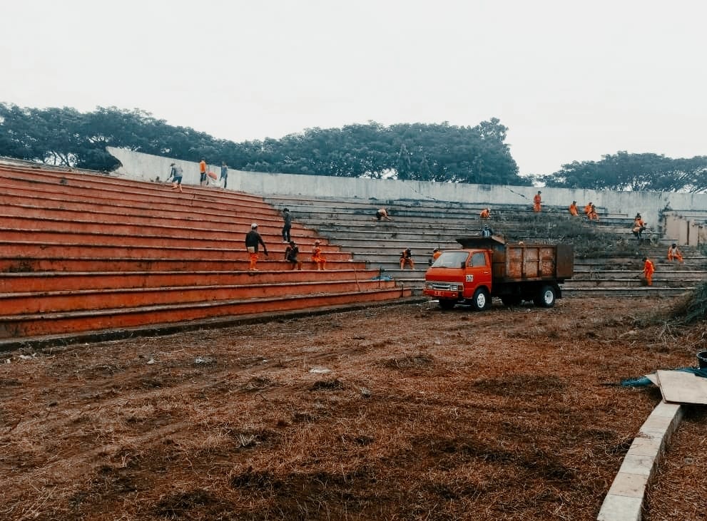 Beberapa titik di dalam stadion yang sebelumnya ditumbuhi belukar sudah bersih, begitu juga yang terlihat di bagian tempat duduk penonton sudah tak ada lagi rumput liar. Ada 18 unit pemotong digunakan DLHK Mamuju dibantu 10 unit dari Pemprov Sulbar, dua armada mobil dan 12 motor sampah terlihat bolak balik mengangkut sampah.