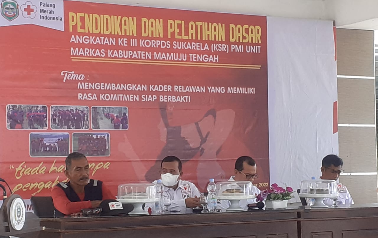 MATENG, RAKYAT SULBAR. COM – Palang Merah Indonesia (PMI) Unit Markas Kabupaten Mamuju Tengah (Mateng), gelar Pendidikan dan Pelatihan Dasar Angkatan Ke lll Korps Sukarelawan (KSR). Dengan tema: mengembangkan kader relawan yang memiliki rasa komitmen siap berbakti, di Pendopo Rujab Ketua DPRD Mateng, Jalan Tammauni Puekballung, Kabupaten Mamuju Tengah, Provinsi Sulawesi Barat.