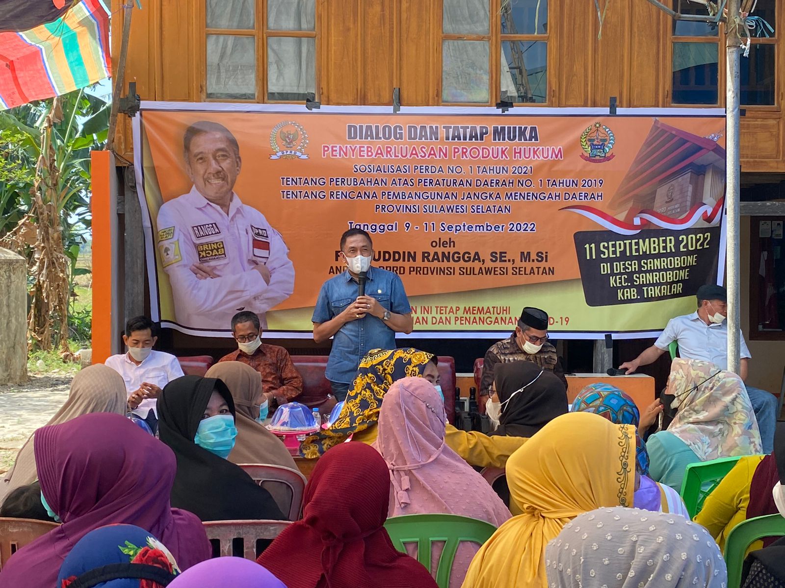 MAKASSAR, RAKYATSULBAR.COM – Fahruddin Rangga selaku anggota DPRD Sulsel, dari Fraksi Golkar. Titik pertama dan kedua pelaksanaan kegiatan Penyebarluasan Produk Hukum Daerah terkait Peraturan Daerah Nomor 1 Tahun 2021 tentang Perubahan Atas Perda Nomor 1 Tahun 2019 tentang Rencana Pembangunan Jangka Menengah Daerah (RPJMD) Provinsi Sulawesi Selatan 2018-2023, Minggu (11/9/22).
