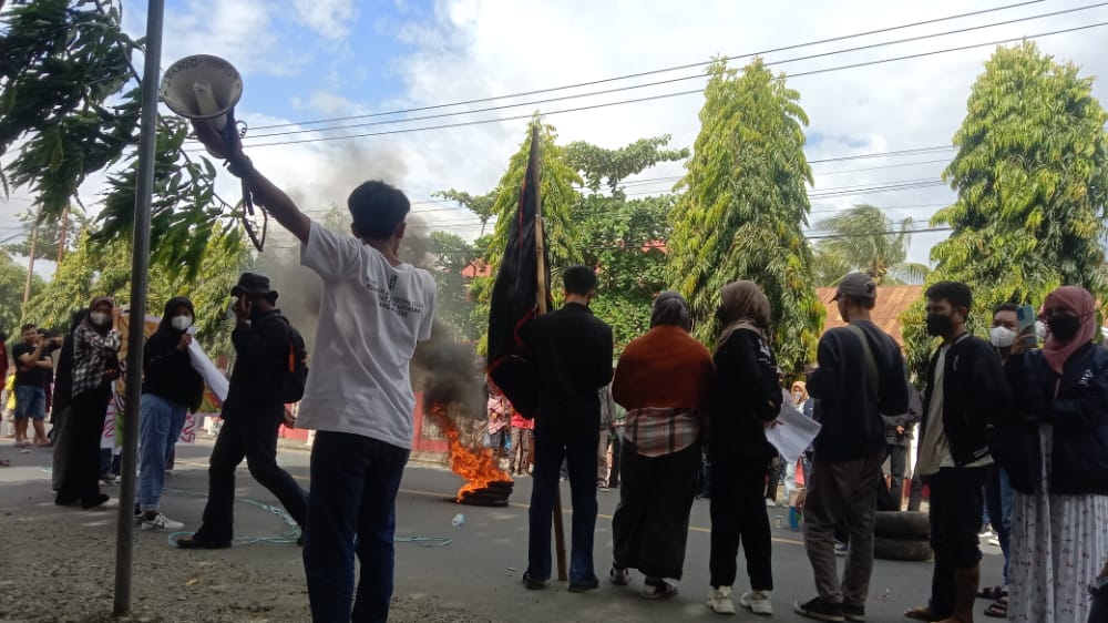 Salah satu orasi dari aksi massa melontarkan pertanyaan dimana hati nurani kalian yang membiarkan jenazah dibawah keluarga dengan ditandu sejauh 5 kilometer menjadi fenomena dan keresahan warga Campalagian.