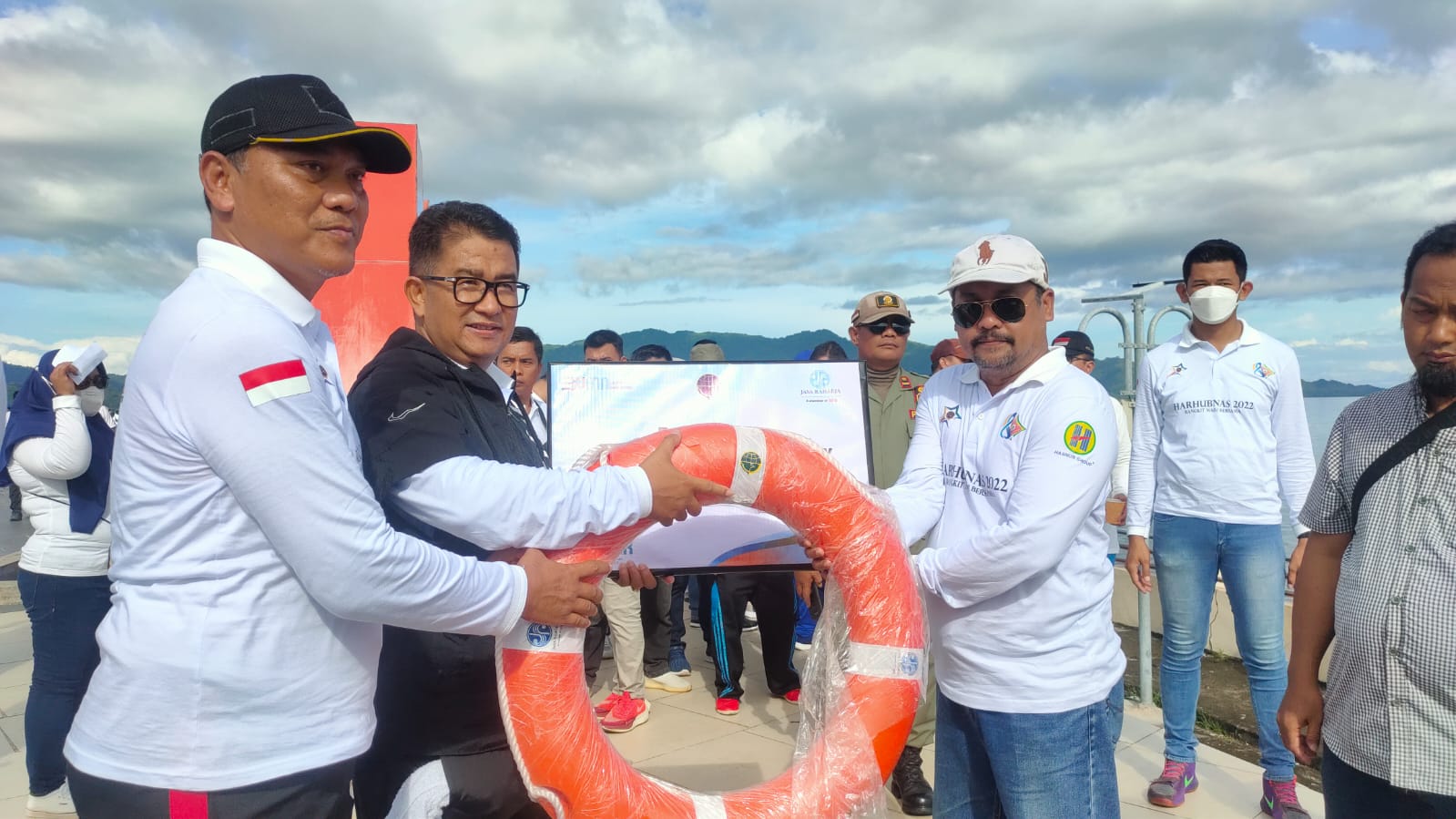 Dan untuk Penyerahan Alat Keselamatan Lalulintas yaitu Lifebuoy (Pelampung) sebanyak 15 unit kepada PT. ASDP Ferry selaku Operator Kapal Penyeberangan Mamuju-Balikpapan, dan 10 unit untuk PT. AMS selaku operator Kapal Perintis KM. Entebee Express, dan beberapa unit Helm, yang diserahkan langsung secara simbolis oleh PJ. Gubernur Sulawesi Barat Akmal Malik berserta Kepala PT. Jasa Raharja Perwakilan Mamuju Crisno Bowo, dan diterima langsung oleh GM PT. ASDP Ferry Cuk Prayitno, serta PT. AMS Haidir.