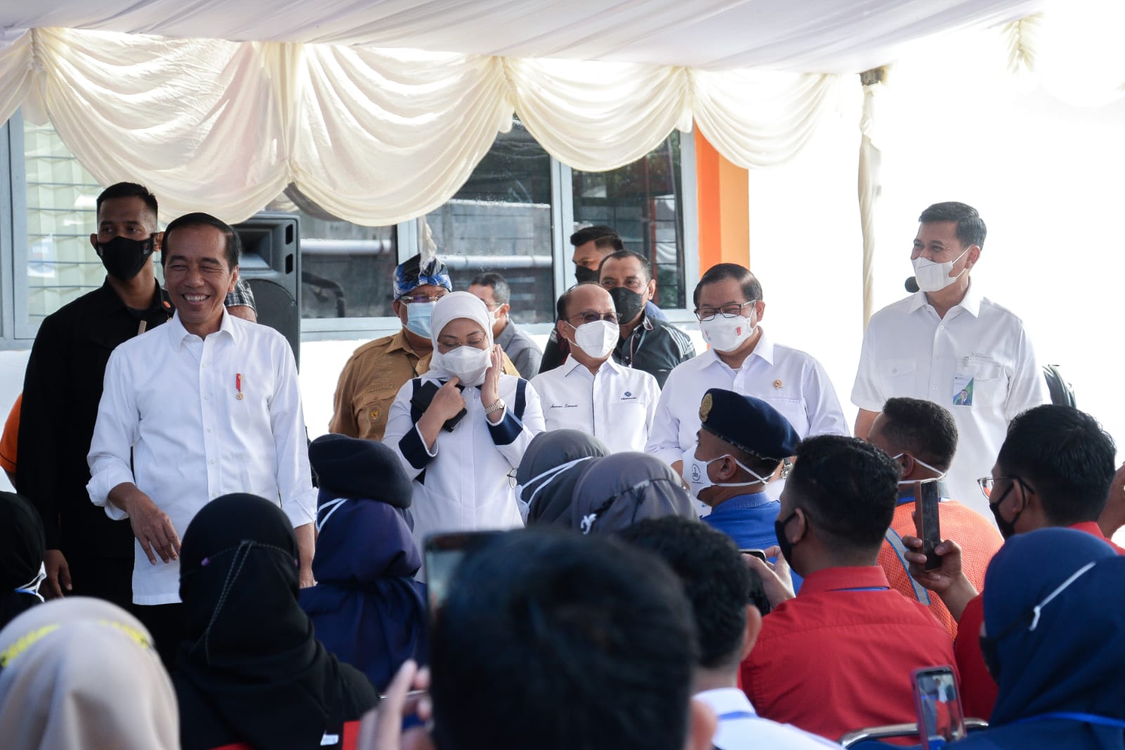 BAUBAU, RAKYATSULBAR.COM – Presiden RI Joko Widodo didampingi Menteri Ketenagakerjaan Ida Fauziyah dan Direktur Utama BPJS Ketenagakerjaan (BPJAMSOSTEK) Anggoro Eko Cahyo menyerahkan Bantuan Subsidi Upah (BSU) kepada pekerja di Kota Baubau dan di Kabupaten Buton.