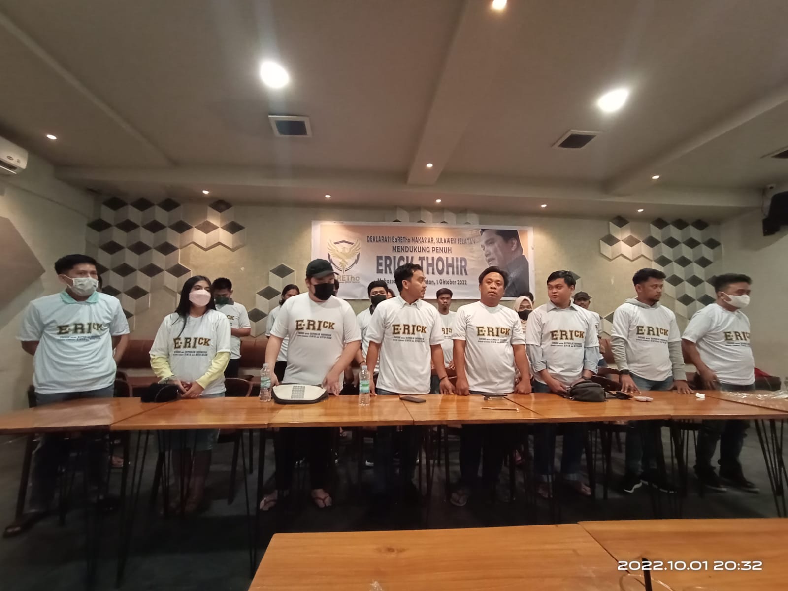 MAKASSAR, RAKYATSULBAR.COM – Barisan Relawan Erick Thohir (Baretho) resmi dideklarasikan di Kota Makassar bertepatan dengan hari Kesaktian Pancasila, Sabtu, (1/10/22).