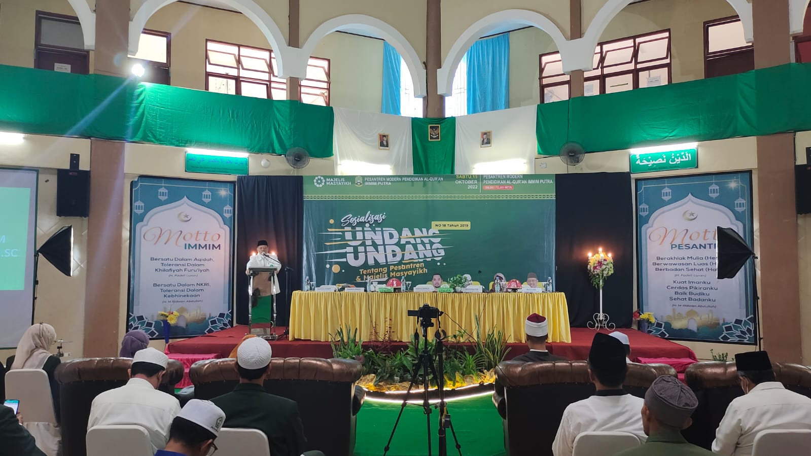 MAKASSAR,RAKYATSULBAR.COM – Sosialisasi UU Nomor 18 Tahun 2019 tentang Pesantren dan Majelis Masyayikh dilangsungkan di aula Kampus II Pesantren IMMIM Putra di desa Moncongloe Bulu, Kecamatan Moncongloe, Kabupaten Maros, Sabtu, (15/10/22).