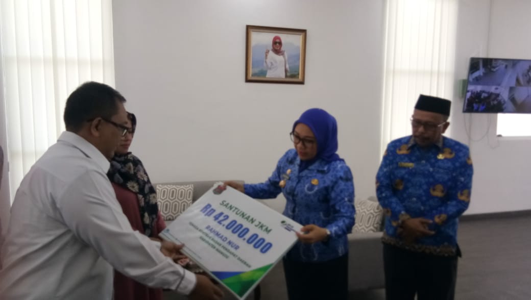 “Non ASN itu kita telah jamin dua, yakni BPJS Kesehatan dan BPJS Ketenagakerjaan. Dan terbukti hari ini ada pembayaran santunan kematian, dimana salah satu tenaga kontrak kami yang mengalami kecelakaan hingga meninggal dunia, dan hari ini pihak keluarganya telah mendapatkan santunan dari BPJS Ketenagakerjaan,” sambung Sutinah. (*)