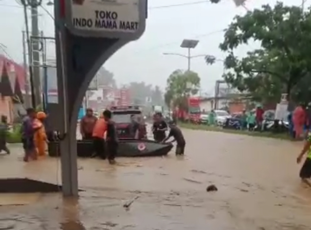 evakuasi serta menurunkan masing-masing 1 unit perahu karet di dua lokasi banjir.