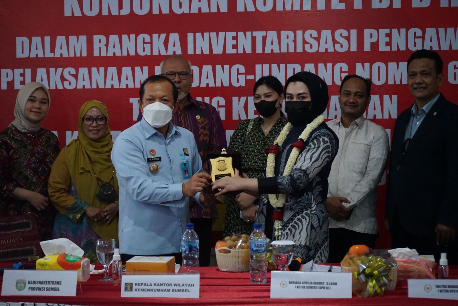 Komite I Dewan Perwakilan Daerah (DPD) RI yang diketuai Andiara Aprilia Hikmat asal daerah pemilihan Banten, disambut Kakanwil Harun Sulianto didampingi Kepala Kantor Imigrasi Kelas I TPI Palembang, Mohammad Ridwan.