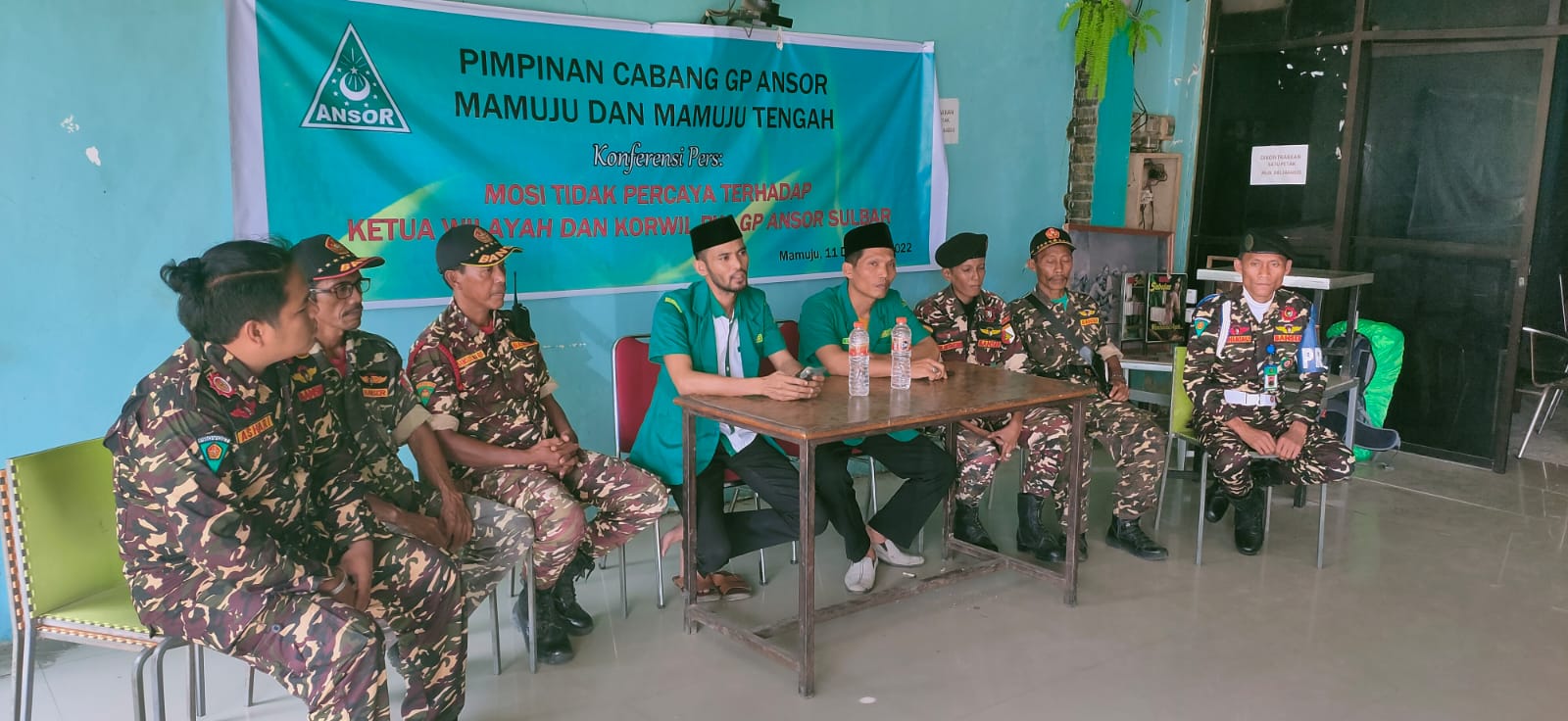 “Kami akan melayangkan surat mosi tidak percaya dan menghadap langsung ke Gus Ketum, Sahabat H. Yaqut Cholil Coumas mengenai kisruh yang terjadi di tubuh GP Ansor di Mamuju dan Mamuju Tengah,” ujar Hikmawan, Minggu malam (11/12/22) saat jumpa pers.