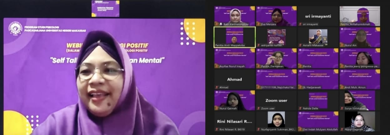 Menurut Eva Meizara selaku pengampuh mata kuliah psikologi positif dan juga wakil Dekan 1 F.Psikologi UNM mengemukakan, webinar psikologi positif ini diadakan dimaksudkan agar mahasiswa Psikologi PPS UNM memperoleh wawasan yang lebih luas mengenai aplikasi positif dalam berbagai bidang peminatan psikologi, sehingga mahasiswa lebih memahami teori dan aplikasi psikologi positif.