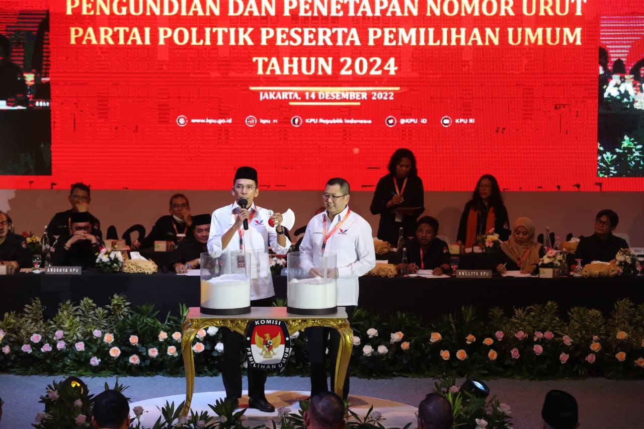 Sebelum pengundian nomor urut parpol peserta Pemilu 2024, KPU terlebih dahulu menetapkan 17 partai politik sebagai peserta Pemilu 2024, salah satunya adalah Partai Perindo.