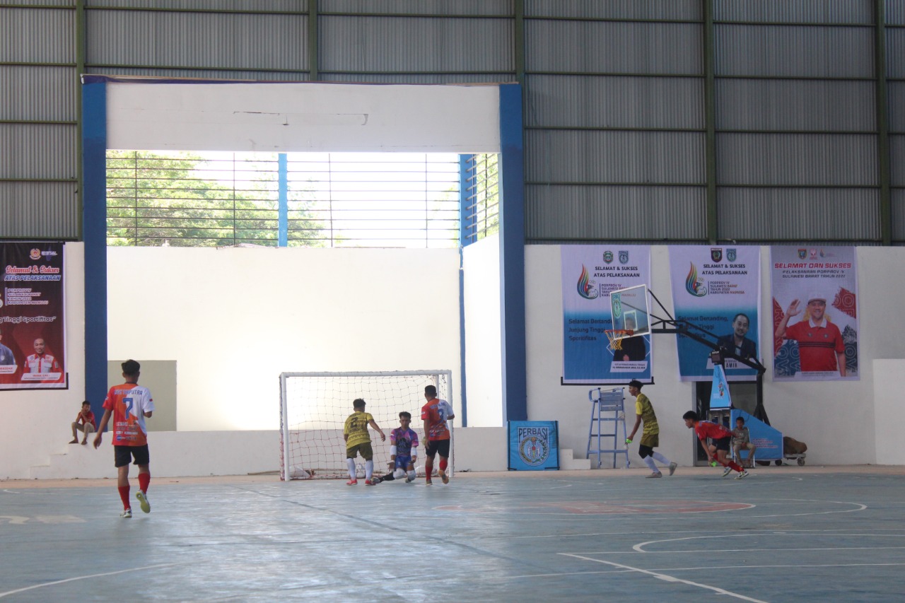 MAMUJU, RAKYATSULBAR.COM– Laga pertama Groub A pertandingan Cabang Olahraga Futsal Pekan Olahraga Provinsi (Porprov) Sulawesi Barat (Sulbar) ke-IV 2022.