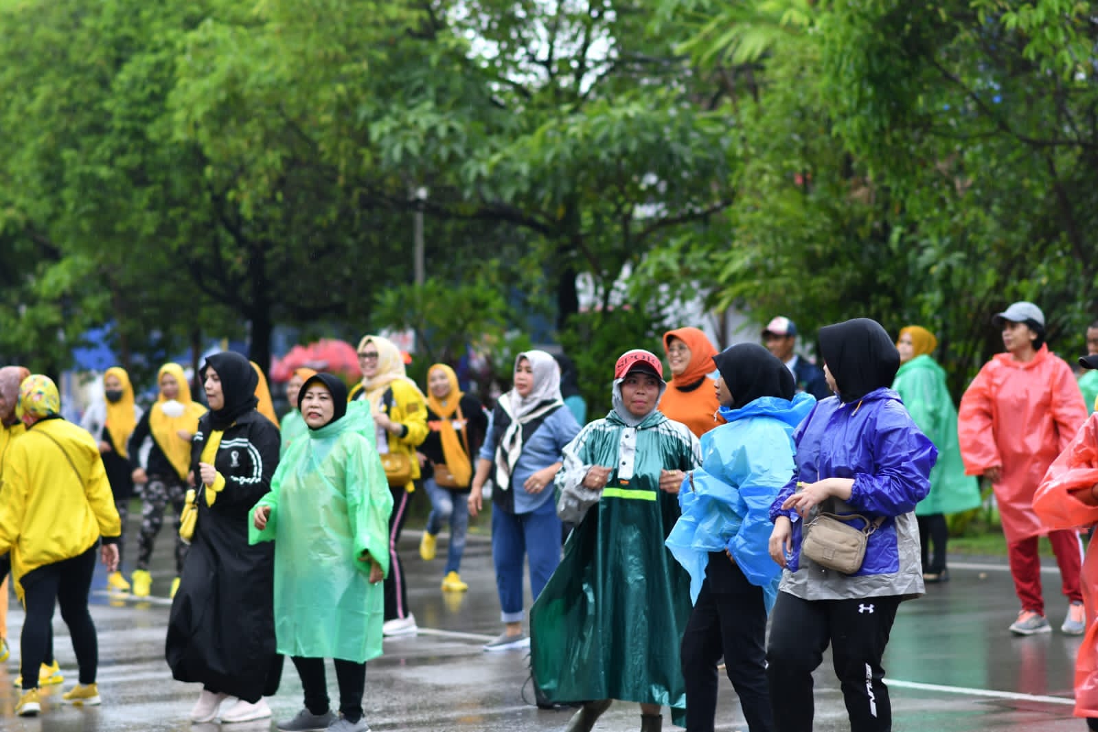 Menurutnya, Hujan gerimis mengiringi pemanasan senam bahkan hingga hujan tetap senam. Karena panpel telah menyiapkan mantel hujan bagi peserta senam.