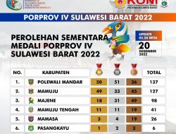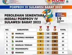 Berikut Perolehan Medali Sementara Porprov Sulbar 2022