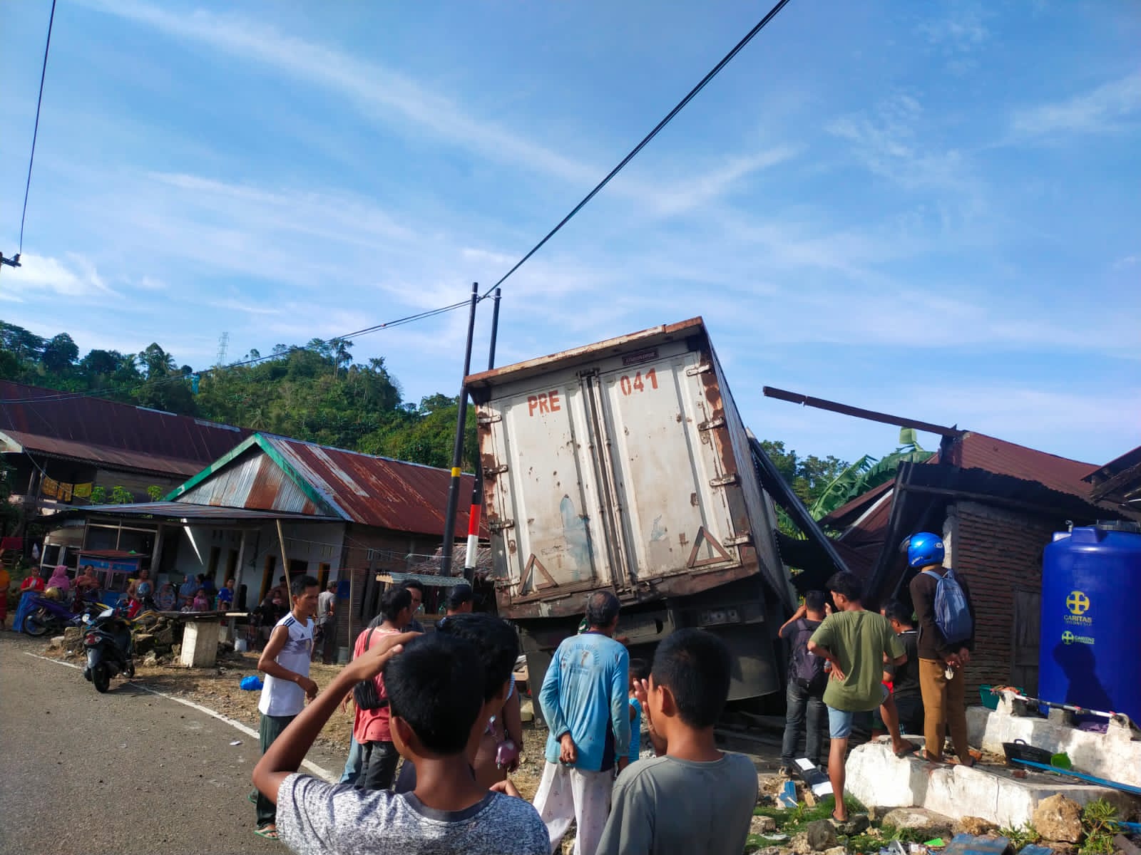 Dimana salah satu mobil Truk Kontainer dengan nomor Polisi DD 8374 XA dengan muatan barang campur dari arah selatan menuju Mamuju menabrak rumah milik warga Dusun Salupalado, Desa Patidi.