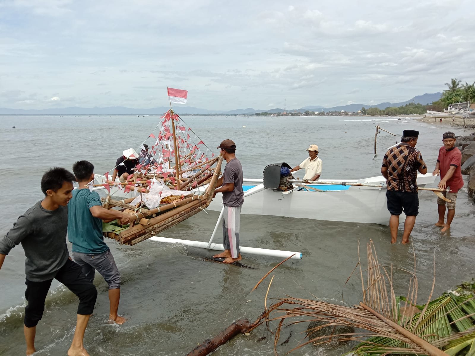 Dalam kegiatan ini puluhan warga nelayan berbaur dalam kebersamaan sambil menyantap makanan yang telah dihidangkan, setelah itu 3 buah kapal miniatur yang dihiasi pernak pernik dihanyutkan sebagai ritual pesta Nelayan.(Erw/*)