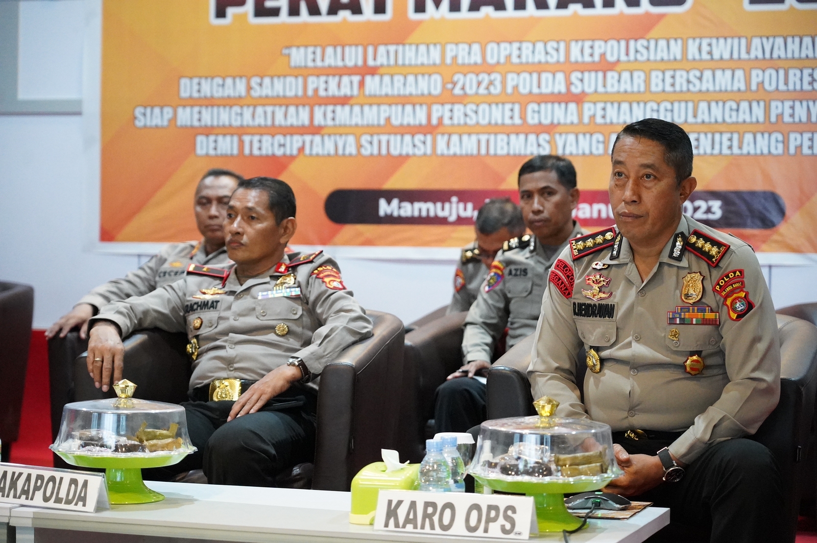 Salah satunya adalah dengan melaksanakan pelatihan Pra Ops pekat Marano 2023 yang Dipimpin langsung oleh Waka Polda Sulbar Brigjen Pol Rachmat Pamudji di ruang command center Polda Sulbar, Rabu (18/1/23).