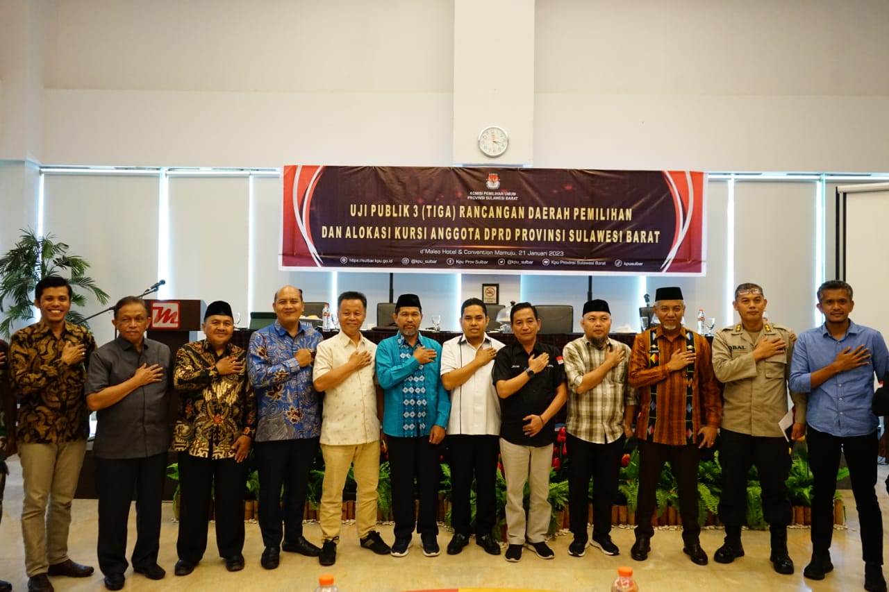 Rancangan inilah kemudian dilakukan uji publik oleh KPU Sulbar Sebanyak 3 kali yang pertama Di Kabupaten Polewali Mandar, Kemudian di Kabupaten Mamuju Tengah dan terakhir di Kabupaten Mamuju.