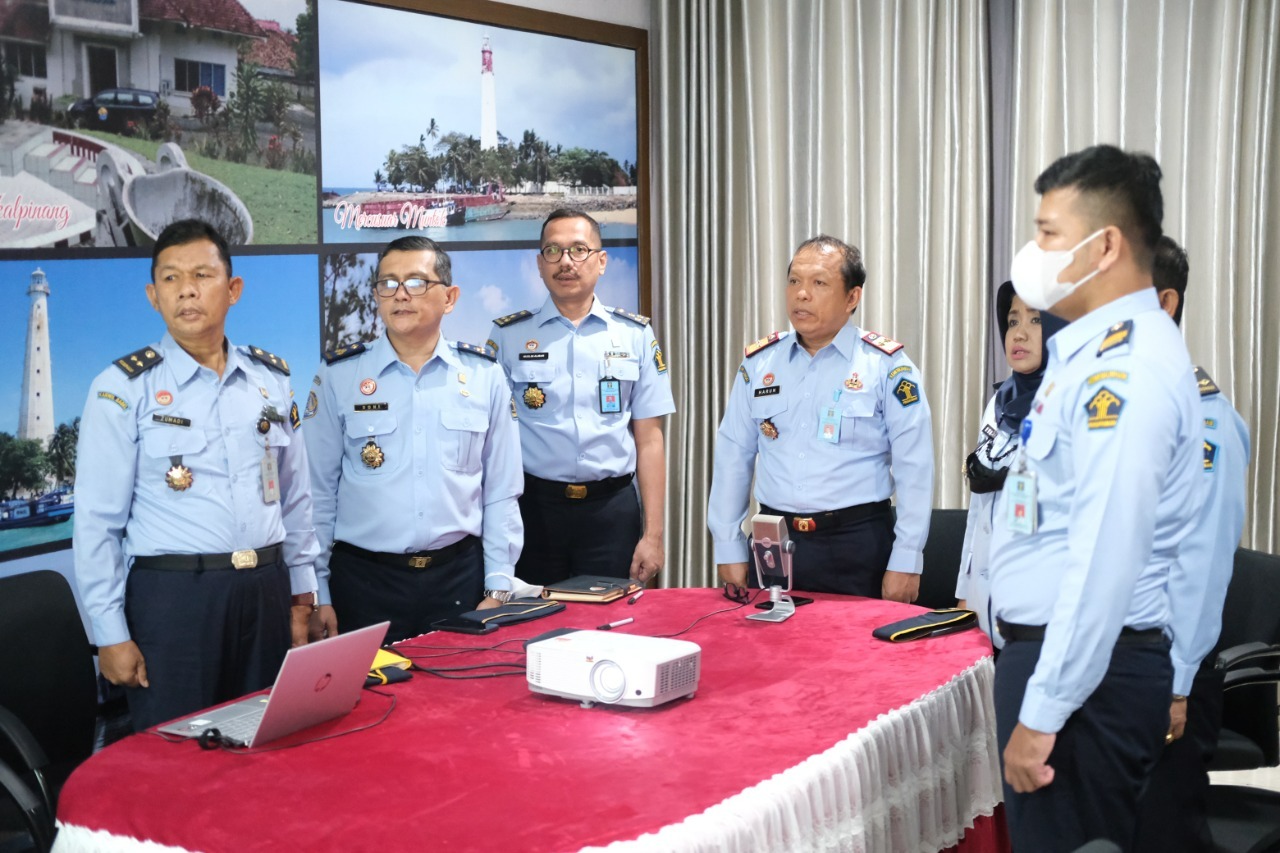 PANGKALPINANG, RAKYATSULBAR.COM– Kepala Kantor Wilayah Kementerian Hukum dan Hak Asasi Manusia Kepulauan Bangka Belitung, Harun Sulianto beserta jajaran ikuti Pembukaan Rekonsiliasi Keuangan serta Pemutakhiran Data Laporan Keuangan dan BMN Kemenkumham untuk 17 Kantor Wilayah secara virtual dari Ruang Kepala Kantor Wilayah, Selasa (24/1).