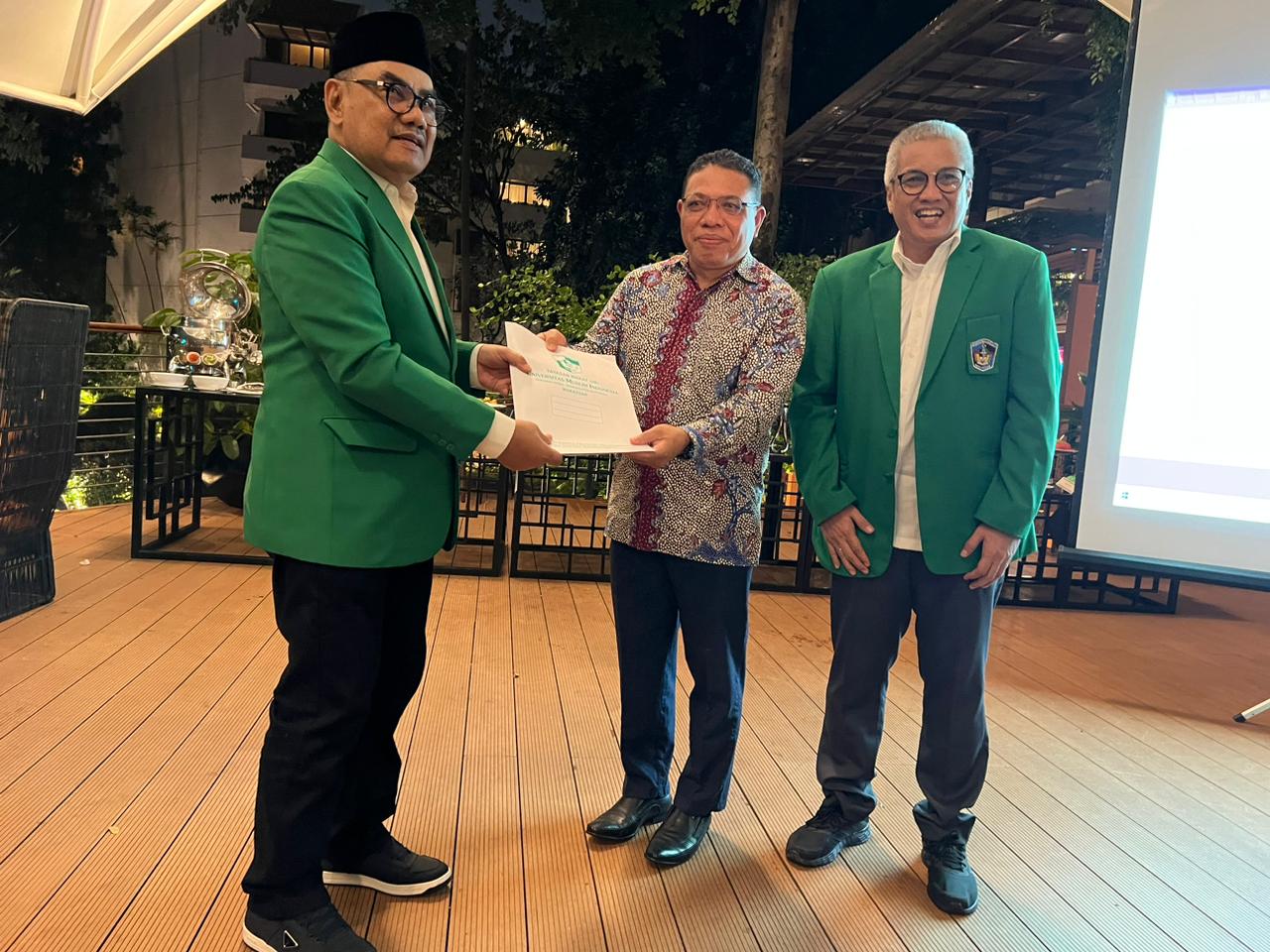 MAKASSAR, RAKYATSULBAR.COM – Rektor Universitas Muslim Indonesia, Prof. Dr. H Basri Modding, SE.,MSi didampingi Wakil Rektor V Bidang Kerjasama dan Promosi, Prof. Dr. Ir H Muhammad Hattah Fattah, MS menyerahkan policy paper kepada Kepala Badan Keahlian DPR RI, Dr. Inosentius samsul, S.H., M. Hum di acara Ramah Tamah Badan Keahlian DPR RI dengan Pimpinan Perguruan Tinggi se Indonesia di Hotel Borobudur Jakarta, Kamis (26/1).
